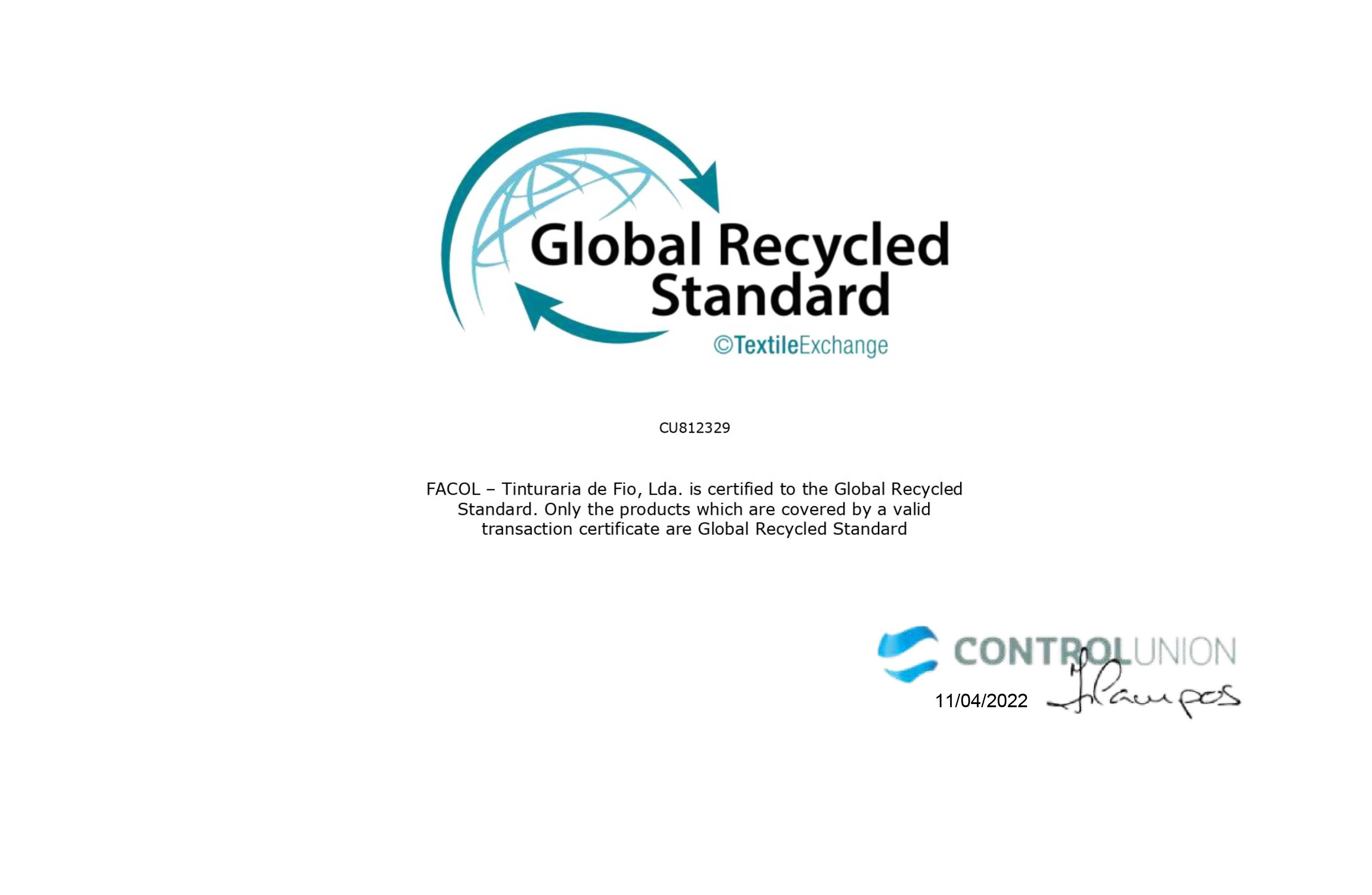 GLOBAL ORGANIC TEXTILE STANDARDFACOL is certified by Global Organic Textile Standard (GOTS) recognized as the world's leading standard for textiles made from organic fibers. It sets high-level environmental criteria throughout the organic textile supply chain and also requires compliance with social criteria.